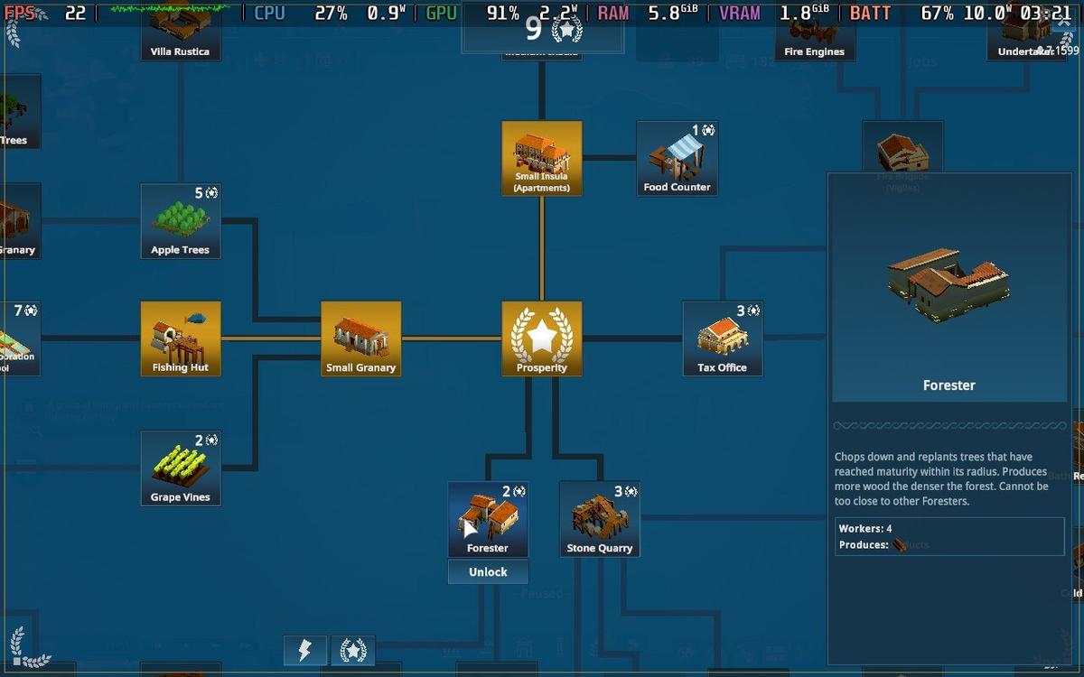 Mecanicile obișnuite de supraviețuire implică menținerea cetățenilor fericiți, oferindu-le hrană, apă și adăpost, astfel încât să nu moară de foame sau de frig iarna. Există o tonă de clădiri diferite de adăugat metropolei tale romane, cu multe altele care pot fi deblocate prin cercetare.