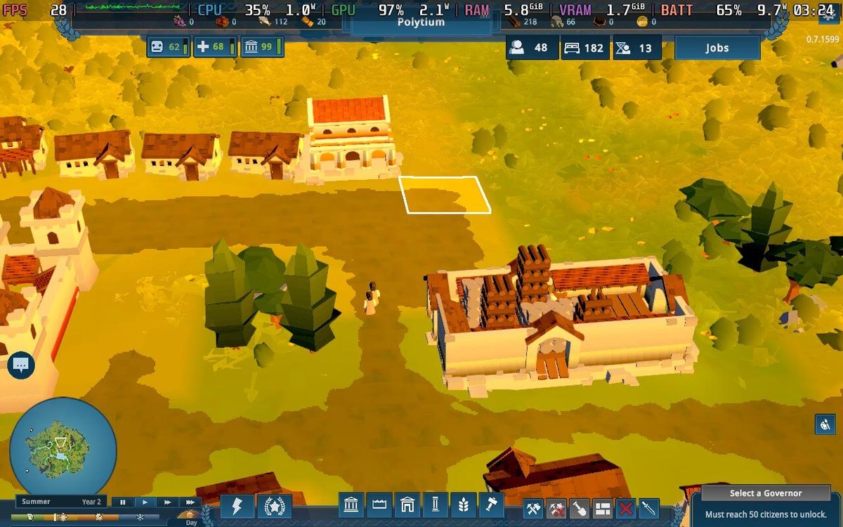 Teoretic, acest lucru este adevărat și poți juca Nova Roma pe Steam Deck cu o experiență tolerabilă. În practică, am găsit lucrurile a fi mai problematice. Asta nu face jocul nejucabil, deoarece se controlează frumos cu trackpad-urile de pe Steam Deck, dar nu am reușit să obțin nici măcar o medie de 50 FPS. Cu siguranță este nevoie de optimizare, iar momentan nu avem prea multe setări cu care să lucrăm.