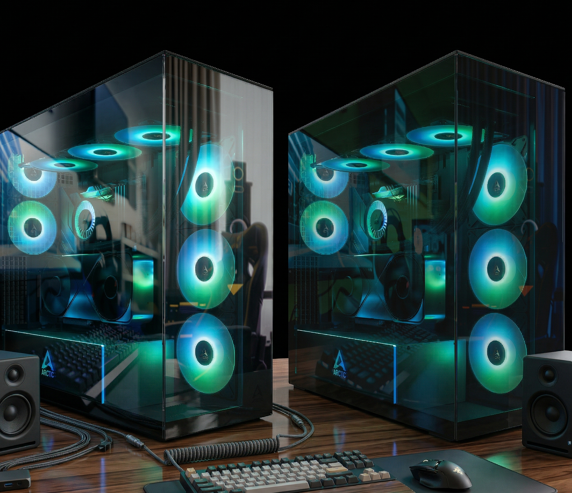 Carcasa dispune de un colț frontal-stânga fără pilon de susținere și panouri din sticlă securizată transparentă pe părțile din față și din stânga. Structura metalică generală a carcasei este fabricată din oțel SECC negru. Carcasa este disponibilă cu sau fără un suport vertical pentru GPU preinstalat și include cinci dintre cele mai recente ventilatoare ARGB LED de la Arctic: două modele P12 Pro (120 mm) și trei P14 Pro Reverse (140 mm).