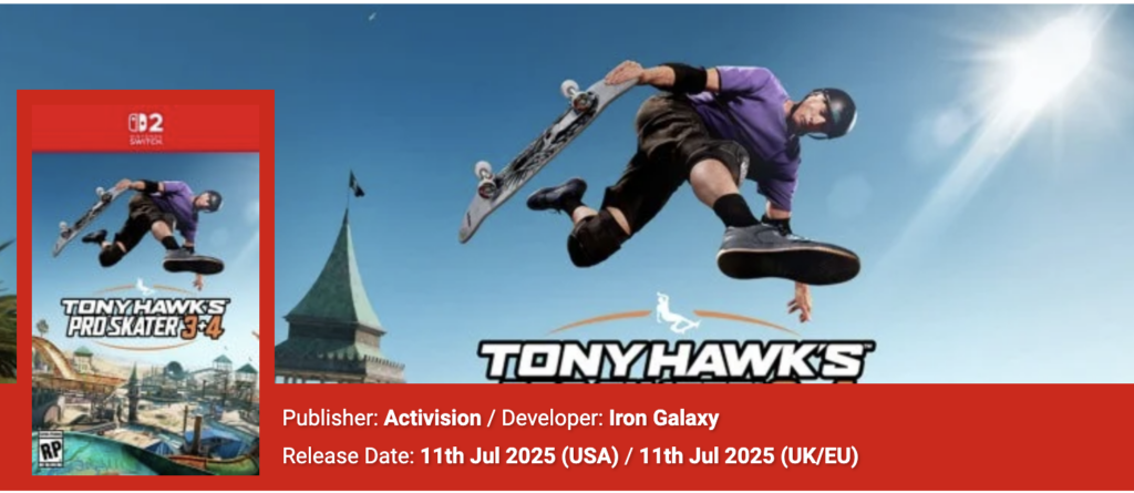 Tony Hawk’s Pro Skater 3 + 4 (11 iulie 2025): Pregătește-te să te întorci pe placă cu remake-urile a două dintre cele mai iubite jocuri de skateboarding.