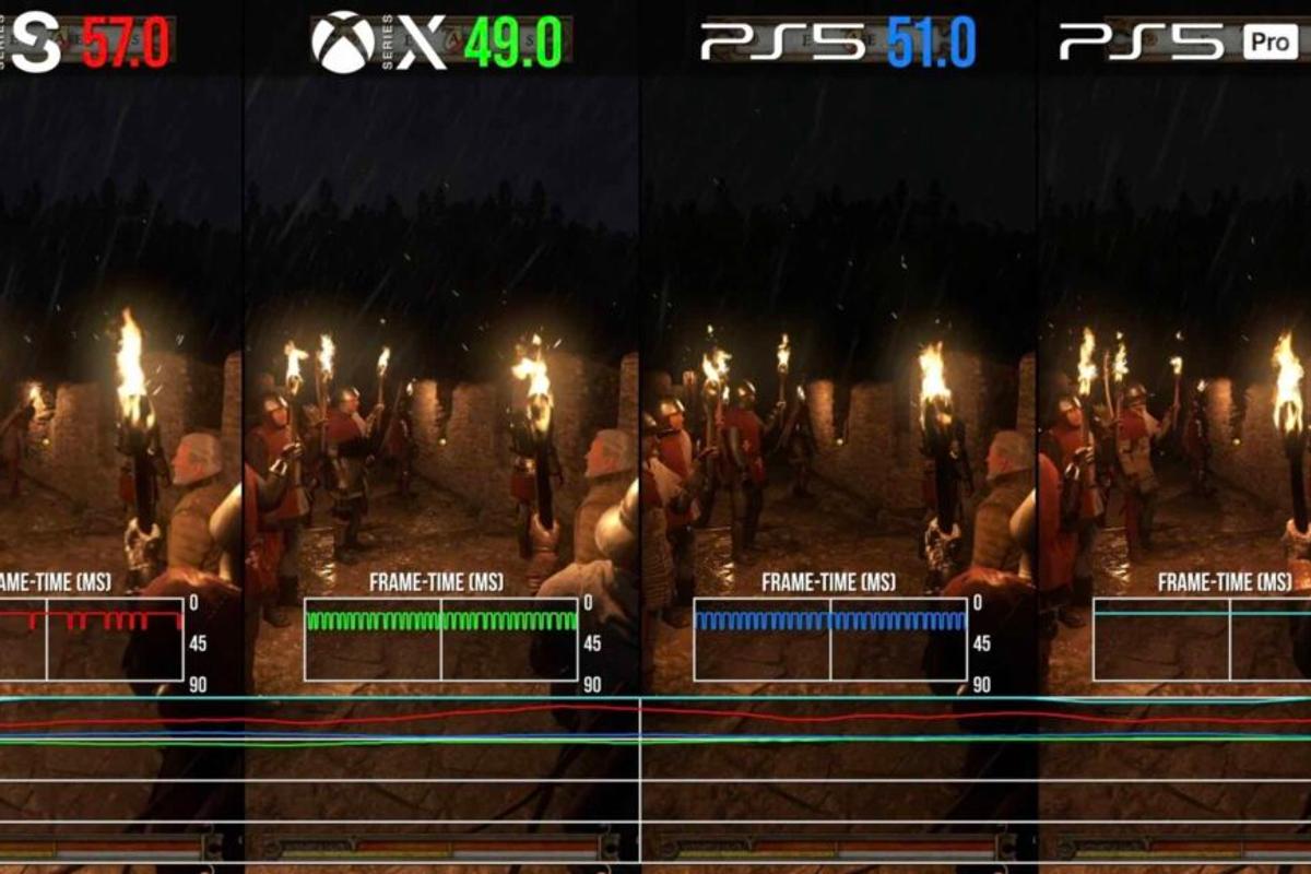 În general, VRR ajută la fluidizarea experienței pe consolele Sony, cu excepția momentelor când framerate-ul scade sub 48fps. Pe Xbox Series X, performanța este ceva mai scăzută, dar intervalul mai larg de VRR (40–60fps) poate oferi o experiență mai stabilă. Interesant este că Xbox Series S reușește uneori framerate-uri mai mari decât PS5 și Series X, datorită setărilor grafice reduse, deși zonele aglomerate rămân problematice.