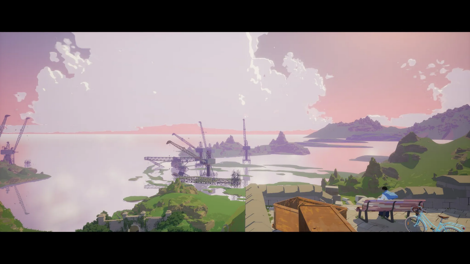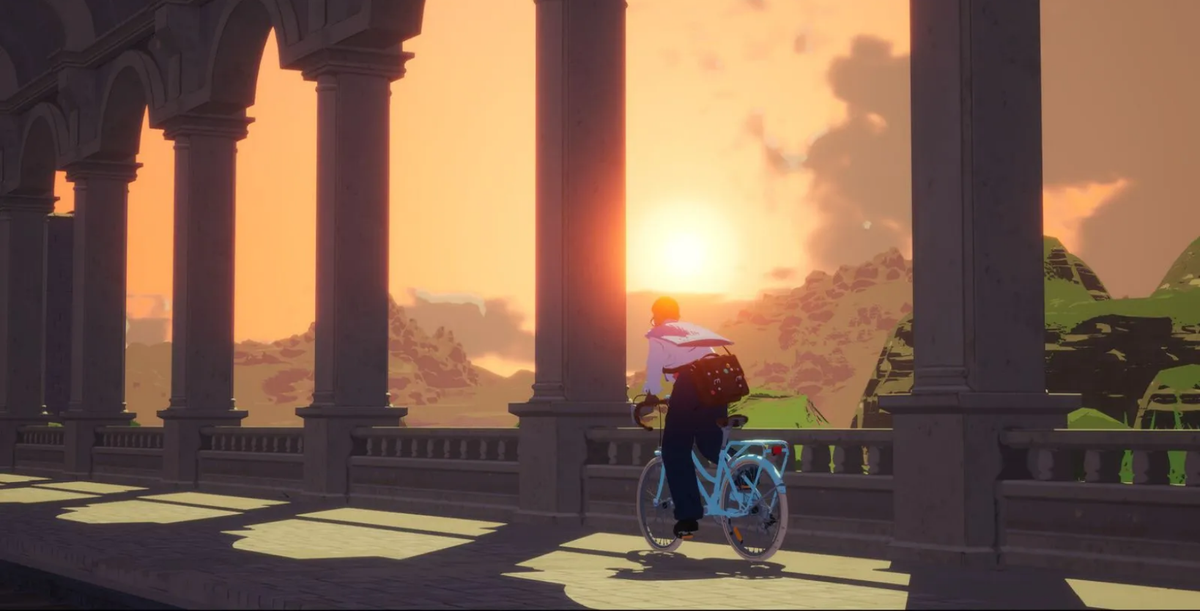 Pe măsură ce pleci, șoaptele narative ale lui Estelle încep să te ghideze. La început, fiecare curbă pare nouă – ea explorează lumea exterioară pentru prima dată. Această „călătorie pe bicicletă” printr-o lume ciudată este deliberată și meditativă. Stilul artistic al jocului este ca o pictură stilizată, cu ceruri în culori pastelate, dealuri ondulate și câmpuri de flori mov care se leagănă în briză.